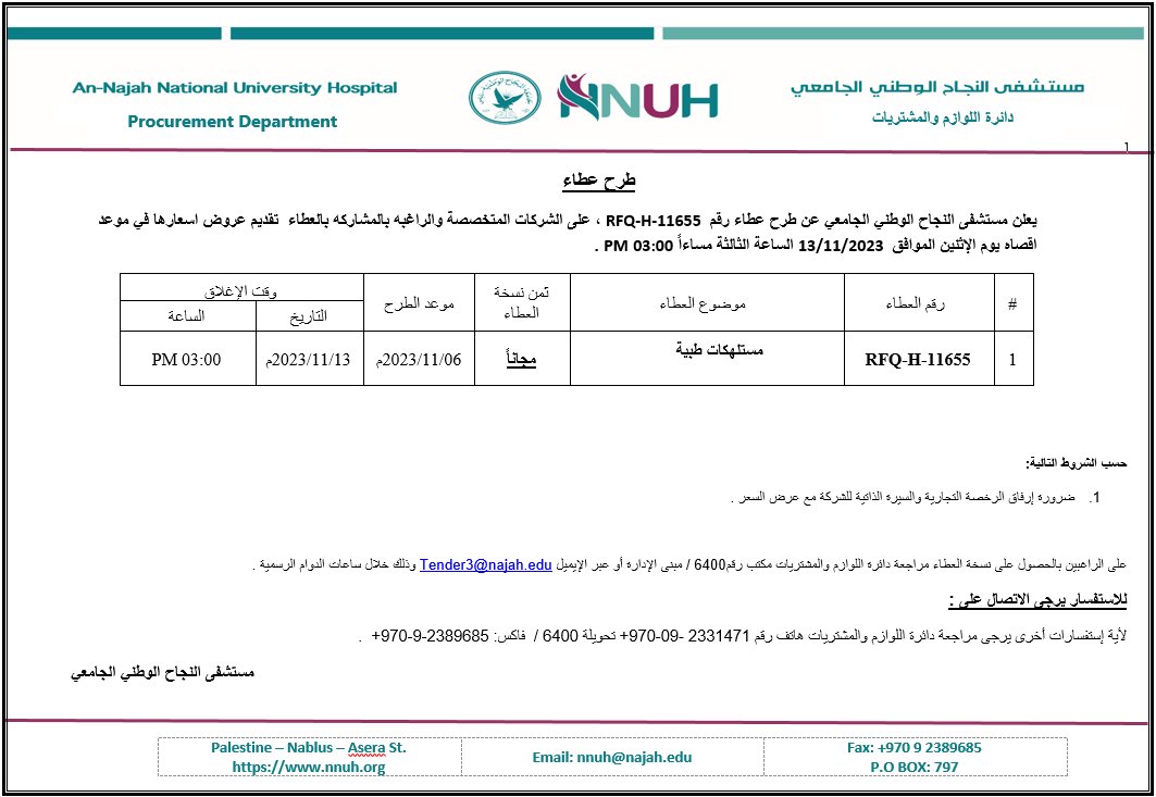 الرجوع إلى قائمة العطاءات